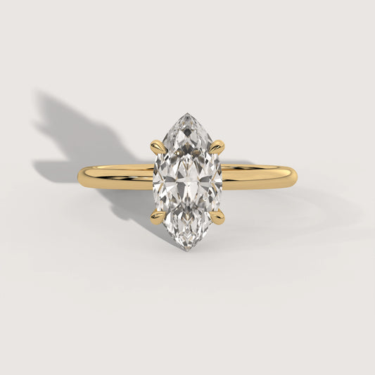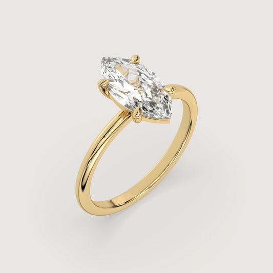 Verlobungsringe aus Gold mit einem einzelnen Diamanten im Mittelpunkt, sind echte Klassiker. Die sogenannten Solitär Ringe legen den Fokus auf nur einen größeren funkelnden Diamanten. Diese Diamanten können in verschiedene Formen geschliffen werden: Rund, Oval, Emerald, Marquise, Pear Cushion, Asscher, Princess oder Heart.